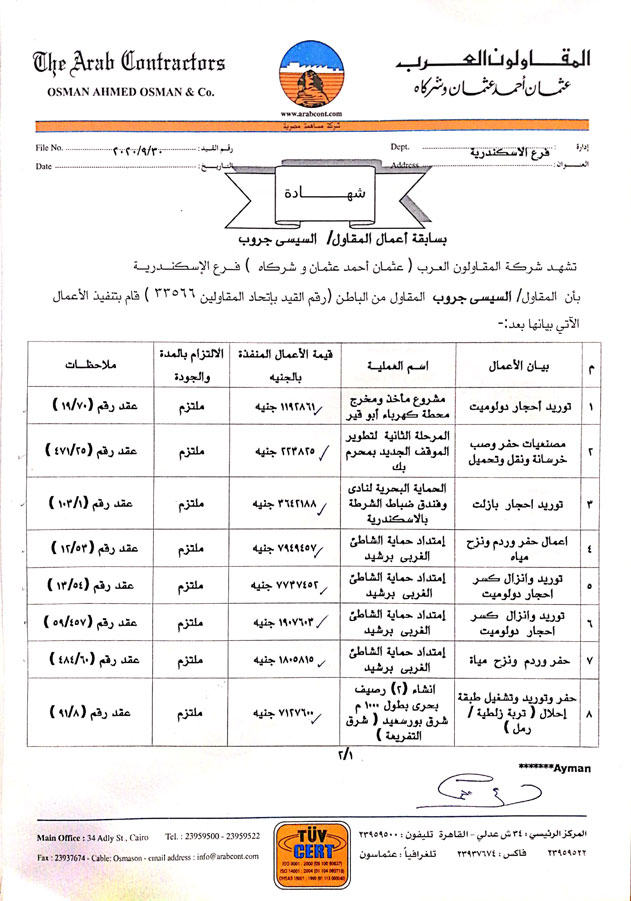 - رواد الإنشاءات البحرية والمقاولات العامة في مصر